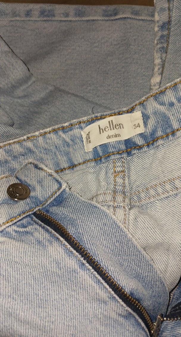 Mavi baskılı, düğmeli denim pantolon. Bol kesim ve sokak stilinde, bohem ve retro havası taşıyor. Günlük kullanıma uygundur. az giyildi boru paca