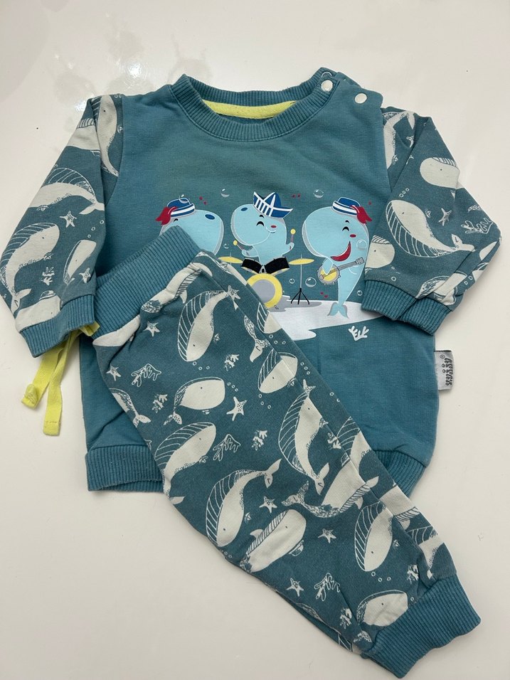 Yumuşak fleece kumaştan, uzun kollu ve bisiklet yaka erkek bebek takımı. Renkli baskılı deniz canlıları ve örme detaylar rahatlık sağlar.