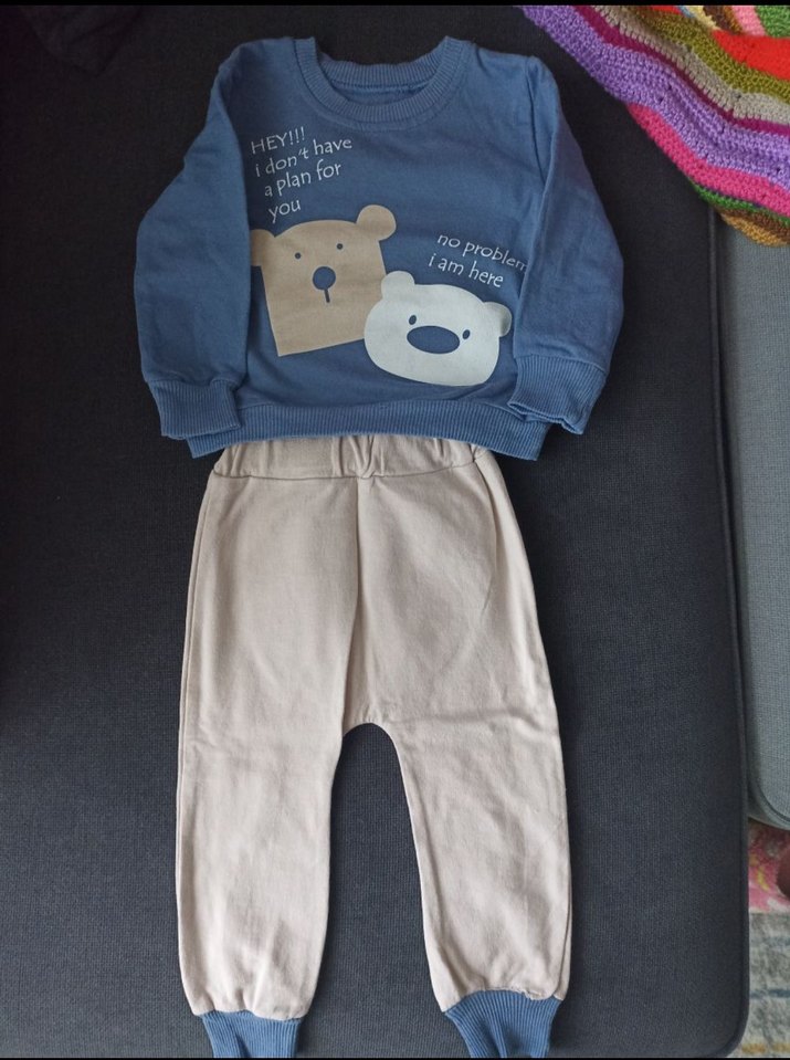 Mavi baskılı uzun kollu erkek bebek takımı. 9 ay için uygun. Hiç giyilmedi.