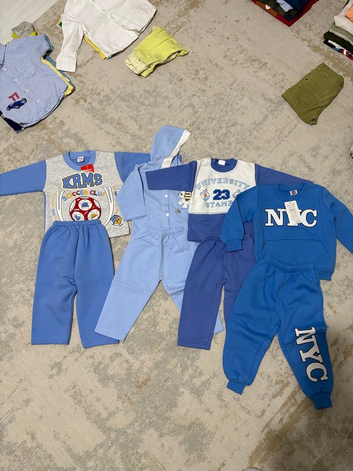 Erkek çocuklar için mavi tonlarında baskılı, bol kesim eşofman altı ve üstlerden oluşan takımdır. Yumuşak ve sıcak fleece kumaştan üretilmiştir. Hepsinin fiyatı