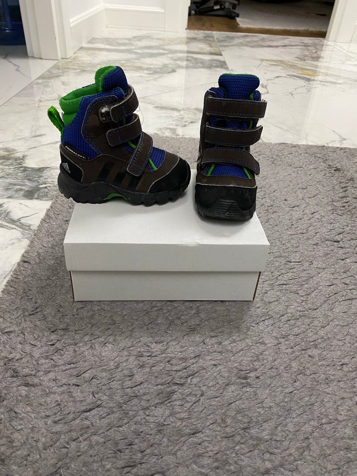 Koyu mavi baskılı, kauçuk malzemeden yapılmış, cırt cırtlı erkek çocuk botları. Rahat ve günlük sokak stili için uygundur.