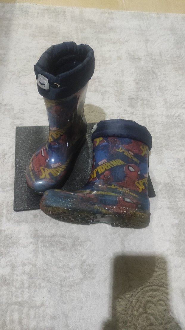 Koyu mavi renkli, Spiderman baskılı lastik erkek çocuk botları, kolay kullanım için cırtcırtlı bantlıdır, sokak tarzına uygun punk esintili. ♂️ sorunsuz rahat kalip