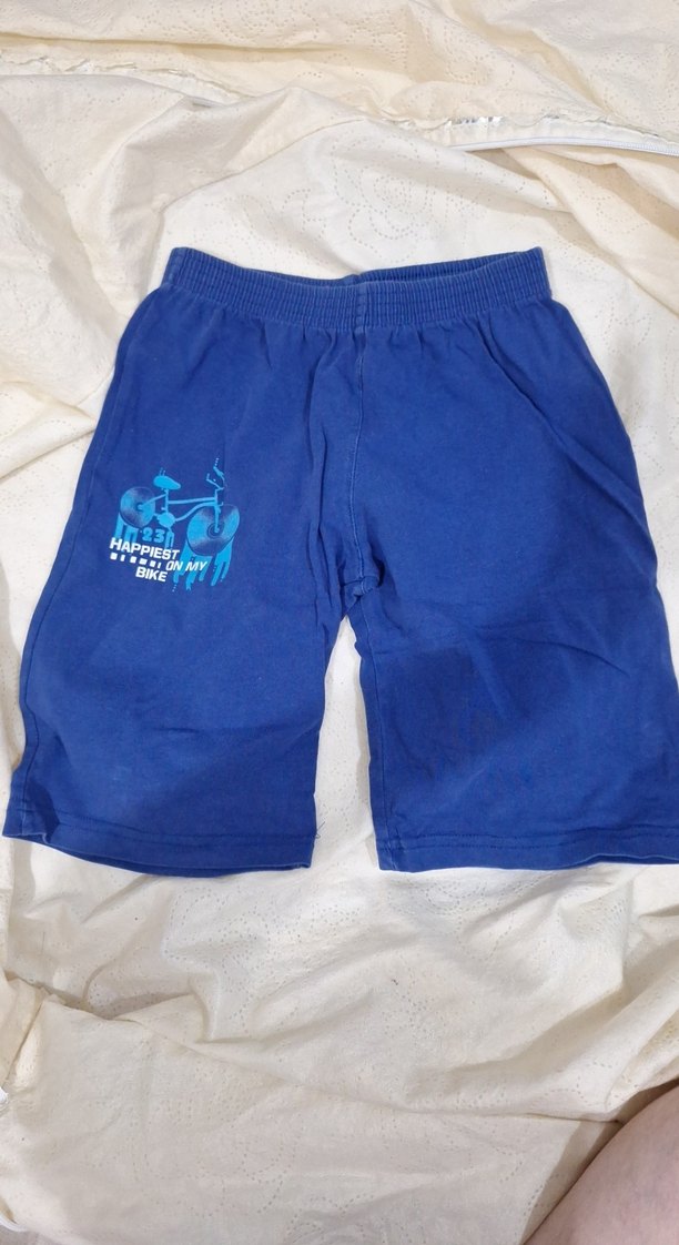 Rahat kesim, yumuşak ve sıcak kumaştan mavi erkek çocuk şortu, bisiklet baskılı, gündelik sokak giyimi için uygun.