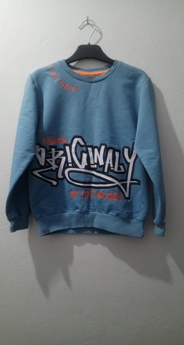 Mavi renkli, baskılı ve bol kesim erkek çocuk sweatshirtü. Uzun kollu, yuvarlak yaka ve örme, yumuşak ve sıcak kumaştan üretilmiştir.
