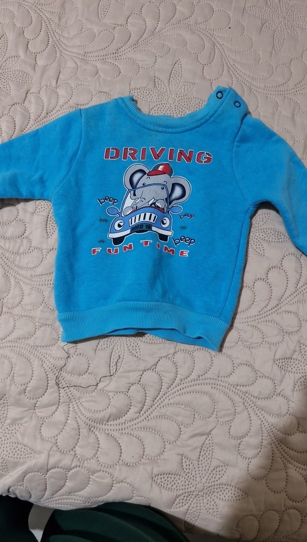 Uzun kollu, düğmeli ve bisiklet yaka erkek çocuk sweatshirtü. Renkli baskılı, rahat kesim ve yumuşak, sıcak kumaş.