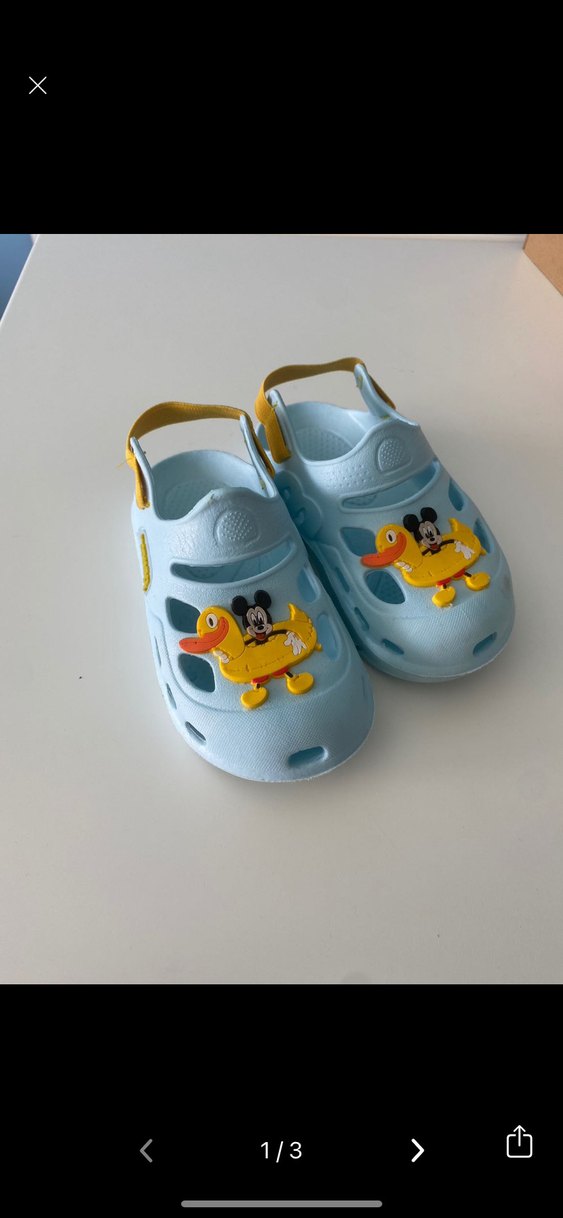 Mavi renkte, baskılı desenli ve tokalı bantlı, erkek çocuklar için rahat terlikler. 1-2 kez giyildi tertemiz sıkıntısız