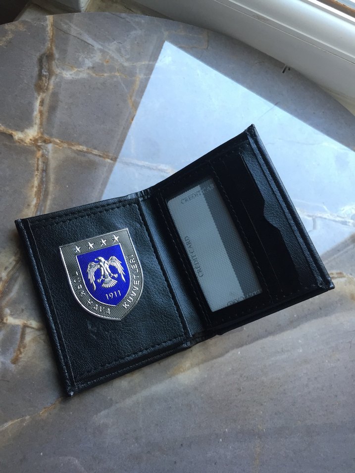 Parlak mavi renkli, baskılı biker tarzında erkek cüzdanı. Birden fazla kart bölmesi bulunur.