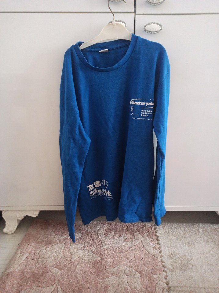 Mavi renk, uzun kollu ve yuvarlak yaka sweatshirtü, baskılı detaylarla rahat ve salaş bir kesime sahiptir. Yumuşak ve sıcak kumaşıyla günlük kullanım için uygundur.