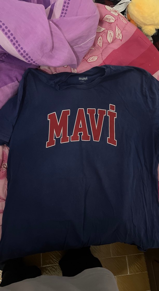 Koyu mavi renkli, kısa kollu, salaş kesim erkek tişörtü. Önünde "MAVI" baskısı bulunur. Yumuşak tekstil kumaştan, günlük rahat kullanım için uygundur.