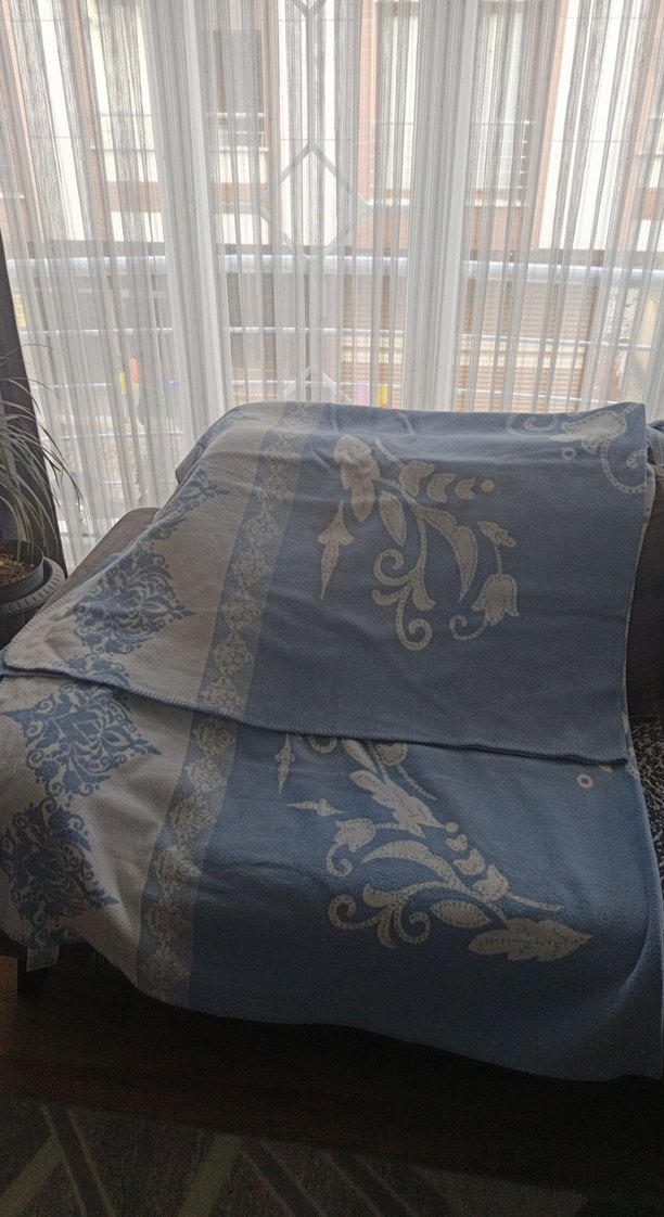 Mavi zemin üzerinde gri baskılı çiçek desenleri bulunan yatak örtüsü, yatak odasına dekoratif bir hava katıyor.
