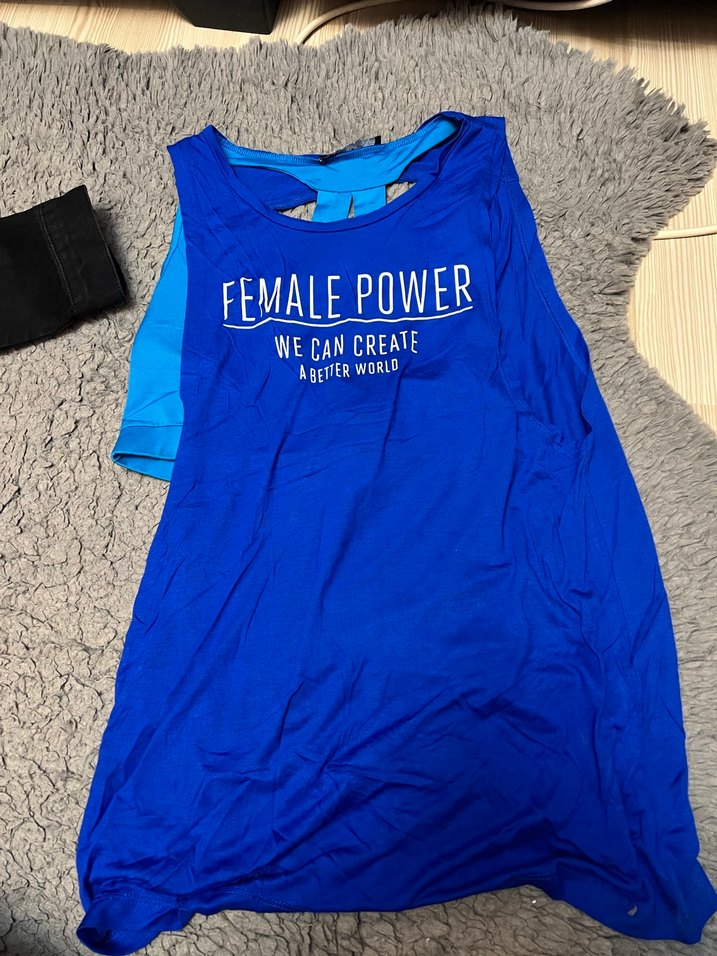 Mavi renkli, baskılı, kolsuz kadın atlet, rahat kesim ve straplez yaka ile. Elastik detaylara sahip, yumuşak ve sıcak kumaştan, spor ve gündelik kullanıma uygun. ♀️