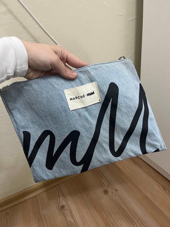 Kot kumaştan yapılmış, baskılı desenli kadın clutch çanta. Fermuarlı ve mavi-gri tonlarda, günlük sokak tarzına uygun bir model. Üzerinde "MARCHÉ-mavi" etiketi bulunur. Koleksiyon ürünü, hiçbir defosu yoktur. 1 kere kullandım yeni yıkandı. Sitesinde 900 tl