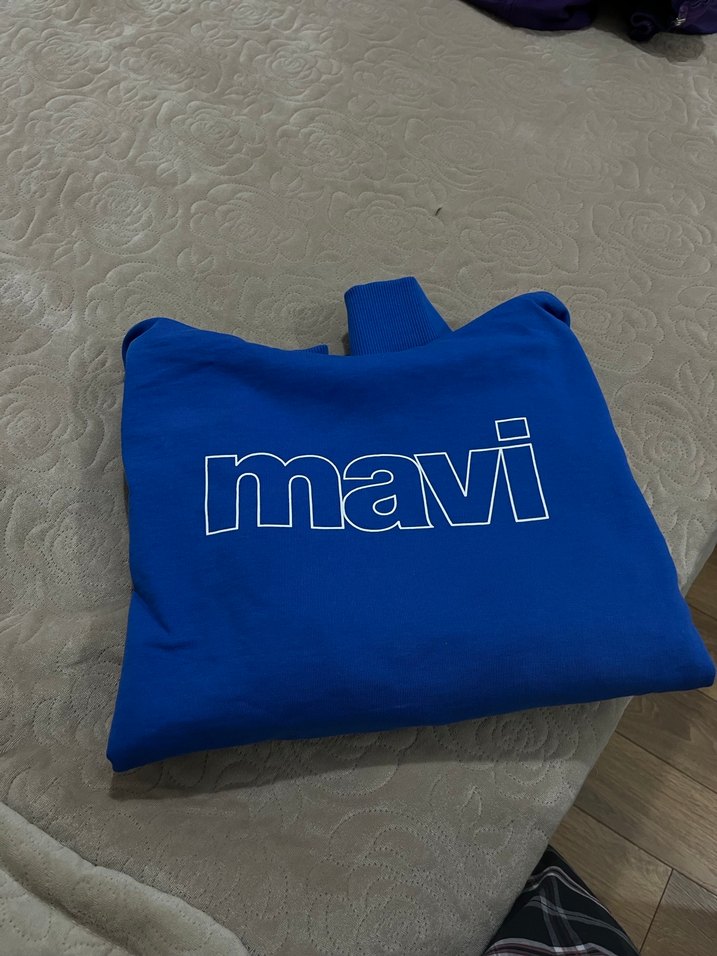 Mavi renkli, kapüşonlu ve uzun kollu kadın sweatshirtü. Önünde "mavi" baskısı bulunur, bol kesim ve yumuşak, sıcak tutan kumaştan yapılmıştır. 1 kere giyildi