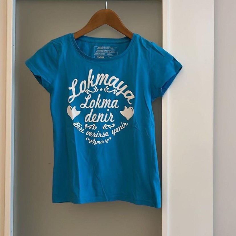 Mavi Baskılı Kısa Kollu Kadın Tişört