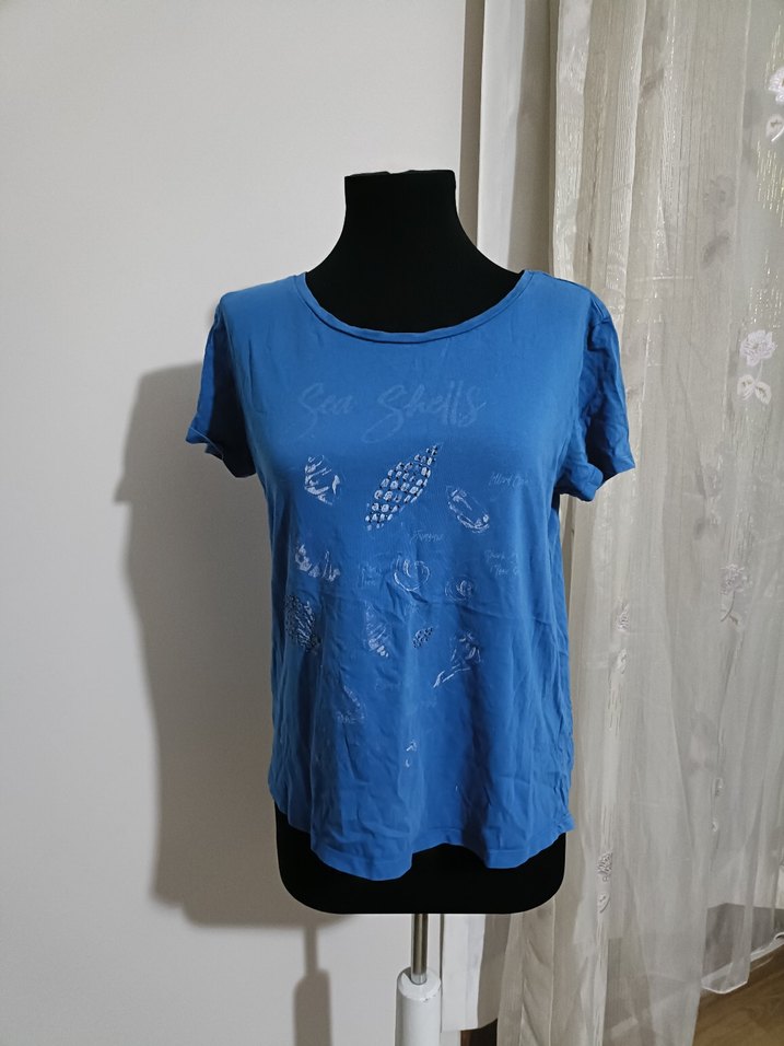 Mavi Baskılı Kısa Kollu Kadın Tişört