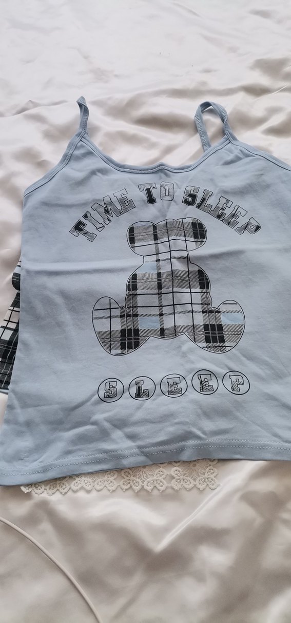 Gri baskılı, ince askılı şort tk