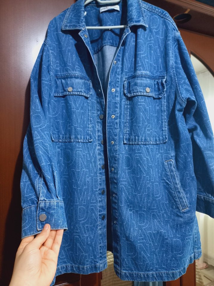 Mavi renkli, baskılı, düğmeli ve uzun kollu, rahat kesim denim ceket. Notlu yaka detayıyla günlük sokak stiline uygun bir parça. ✨ standart beden 40 ve 46 kadar oluyor
