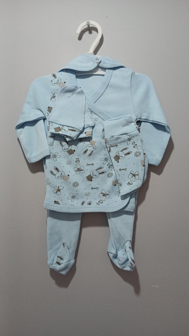 Mavi Baskılı Uzun Kollu Bebek Takımı