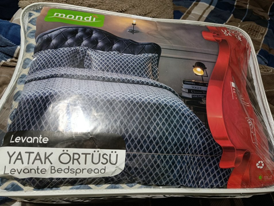 mavi Baskılı Yatak Örtüsü Seti