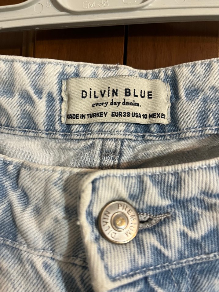 Mavi batik desenli, bol kesim, düğmeli kadın denim pantolon. Sokak stili ve günlük kullanıma uygun, DiLViN BLUE markası, Türkiye üretimi. İnanılmaz tahat bir pantolon
