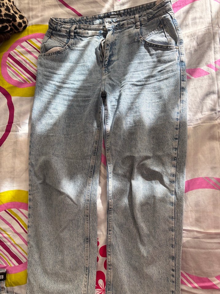 Mavi batik desenli kadın jean, bol kesim ve normal midi boyda. Denim kumaştan, düğmeli ve rahat kesim. Günlük rahat sokak stili için uygundur.