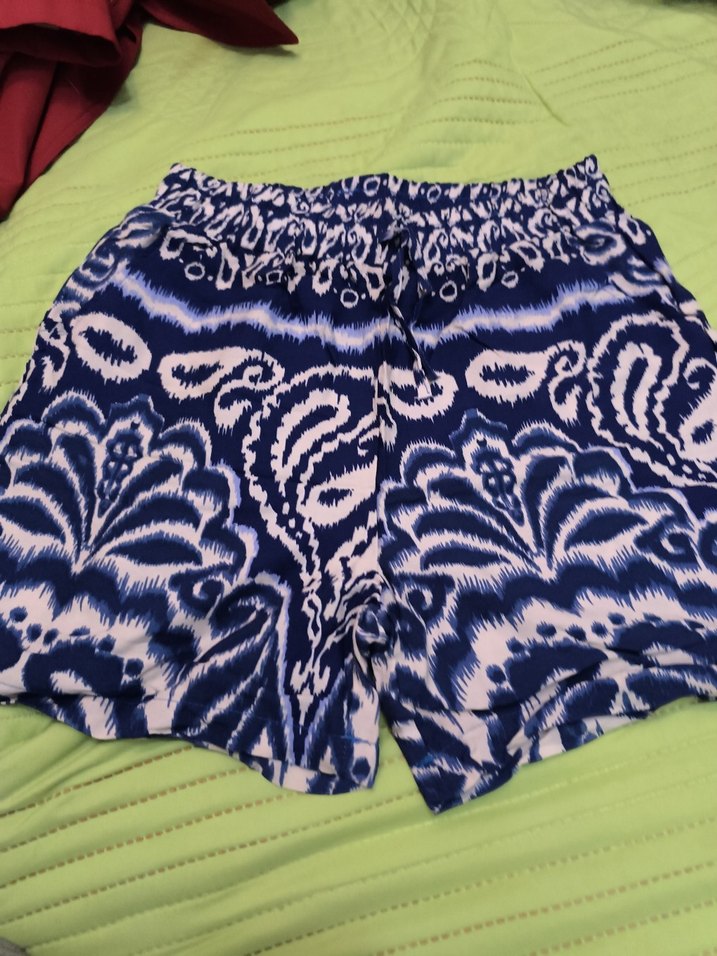 Rahat kesim, mavi batik desenli, pilili detaylı mini şort.y azlık şort imalattan satış