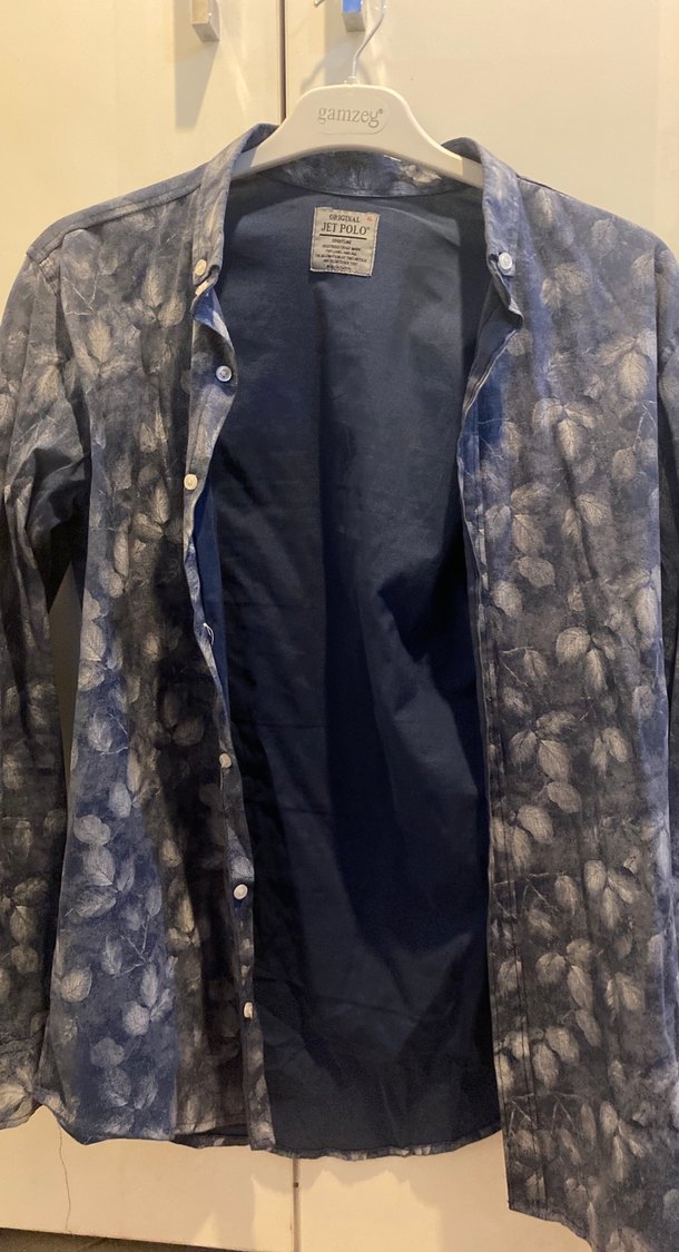 Mavi Batik Desenli Denim Erkek Gömlek