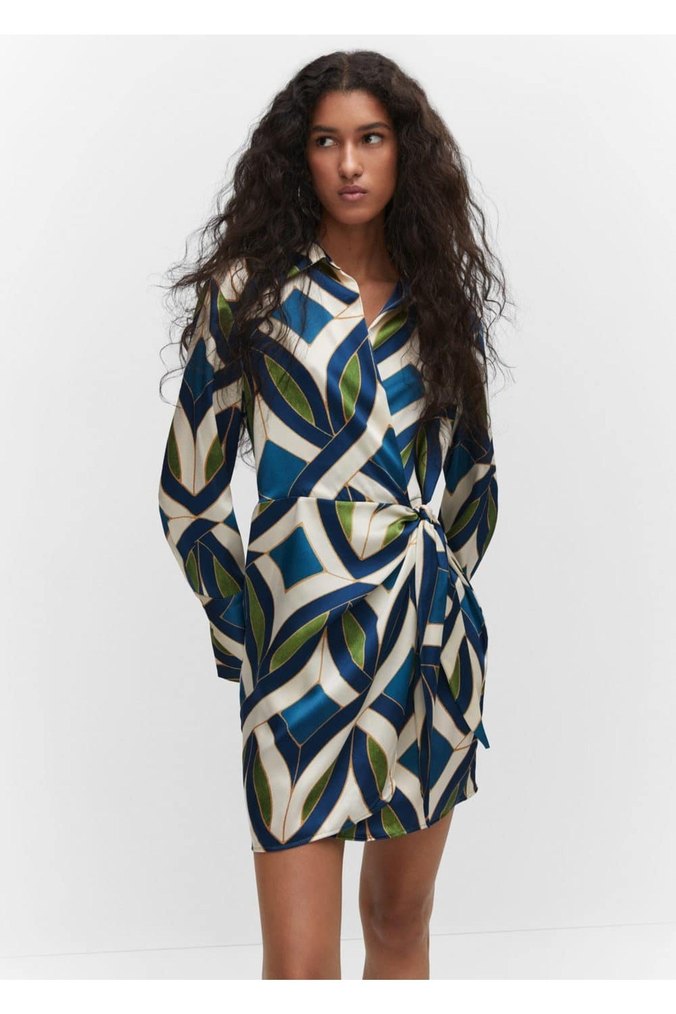 , yakalı ve uzun kolludur. Mavi batik desenli, ipeksi kumaştan, dökümlü tasarıma sahip bohem tarzda. Günlük kullanıma uygundur. Boy 97 göğüs 50