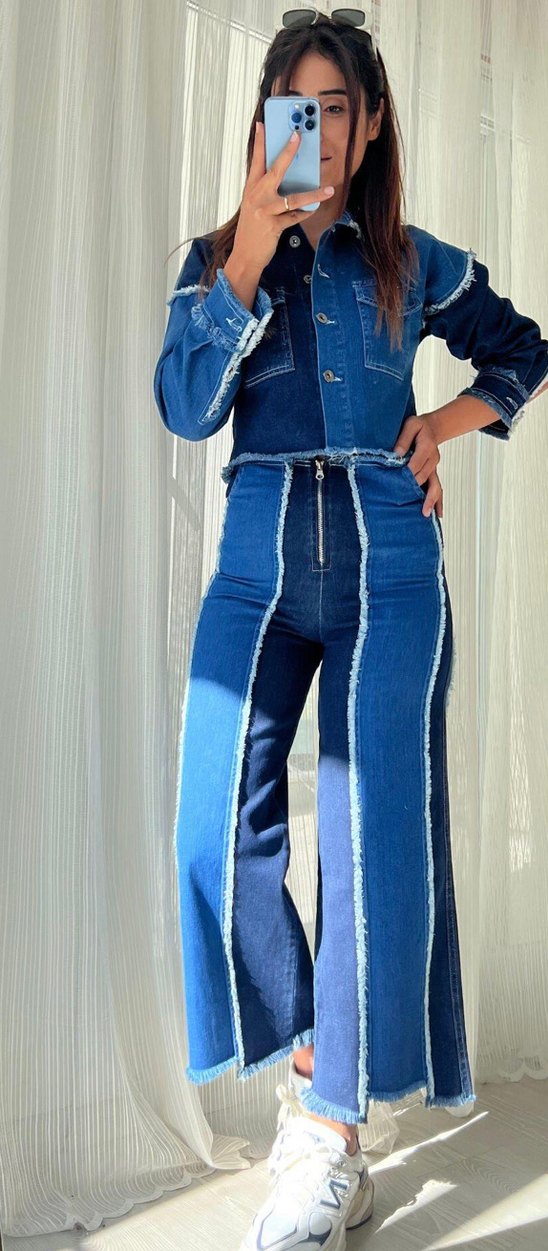 Mavi Batik Desenli Kadın Kot Pantolon takım