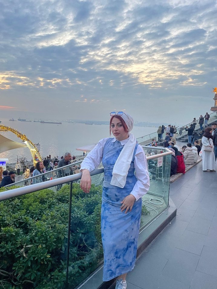 Mavi renkte, yüksek yakalı ve kolsuz pamuklu uzun elbise. Pastel batik desenli, drapeli ve regular fit kesime sahip, günlük kullanıma uygun 1 kere giyildi hiçbir defosu yoktur
