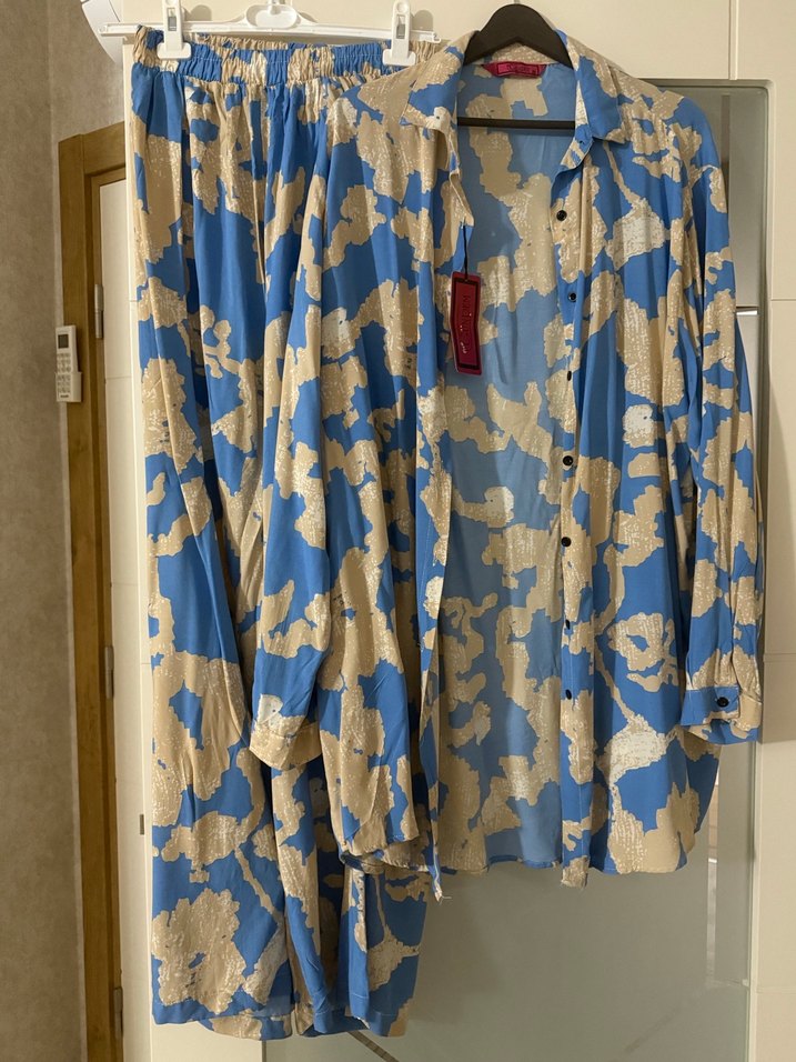 Mavi Batik Desenli Uzun Kadın Takım