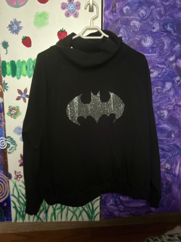 Fazla giyilmedi ve temiz kullanıldı. İki kol arası genişlik 58~ cm, ürünün boyu 60~ cm. Herhangi bir defosu yoktur, taşları da zorlayınca bile çıkmıyor bayağı sağlam. İç etiketinin arkasında %70 pamuk %30 polyester yazıyor. Sıcak tutar. #y2k #batman