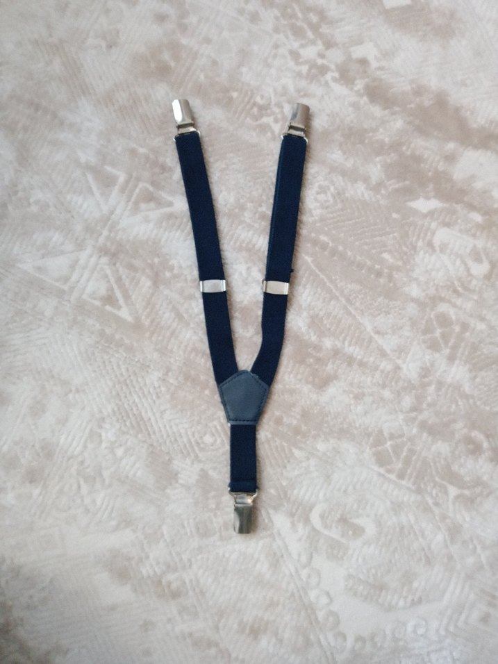 Yumuşak fleece kumaştan yapılmış, tokalı klipslere sahip mavi çocuk askısı, sade tasarımlı.