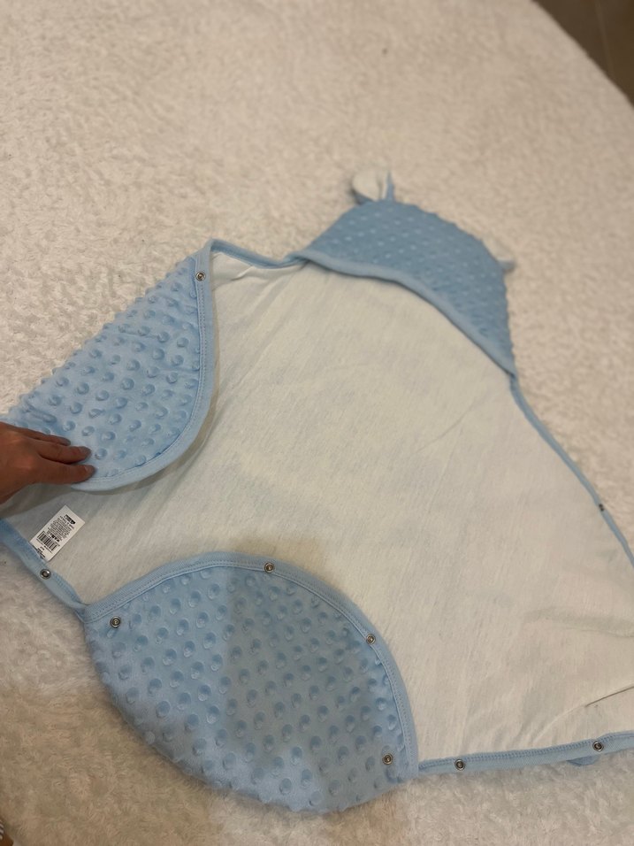 Yumuşak sentetik kumaştan yapılmış, çıtçıtlı, dokulu yüzeye sahip mavi bebek battaniyesi. ️