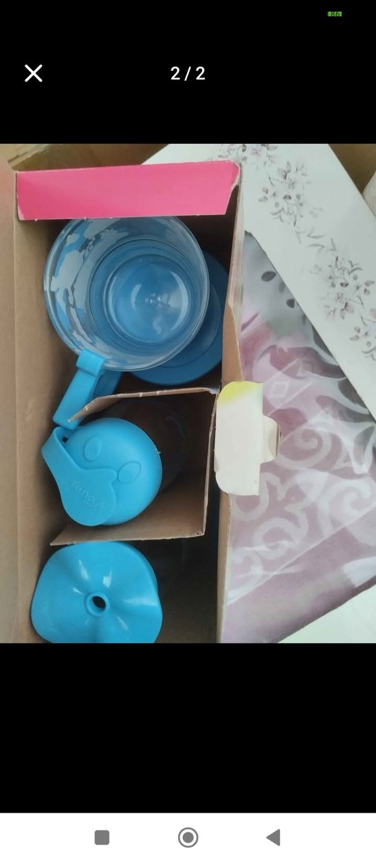 Mavi renkli, saplı bebek biberonu ve uyumlu kapağı içeren set. Kolay tutuş ve kullanım sağlar.