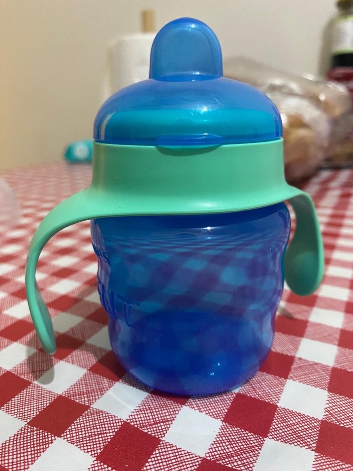 Mavi gövde ve yeşil tutacağı olan, kolay tutuş sağlayan renkli bebek biberonu. Philips avent marka 6 ay itibariye. Sadece 2-3 kez kullandık oğlum içmedi bundan ama çok güzel ürün