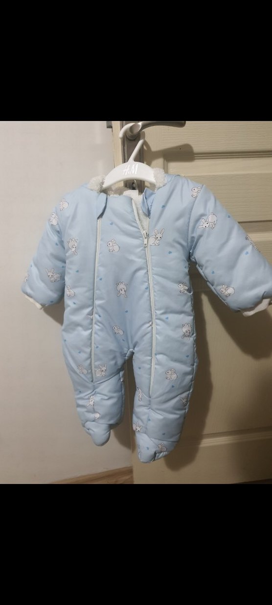 Pastel mavi renkte, peluş detaylı bebek erkek tulumu. Yumuşak ve sıcak kumaştan, fermuarlı ve kapüşonlu, sokak tarzı için uygundur. 2 3 aya kadr kullanılır 2 3 kez giyilmistir herhangi bir yırtık sökük yoktur