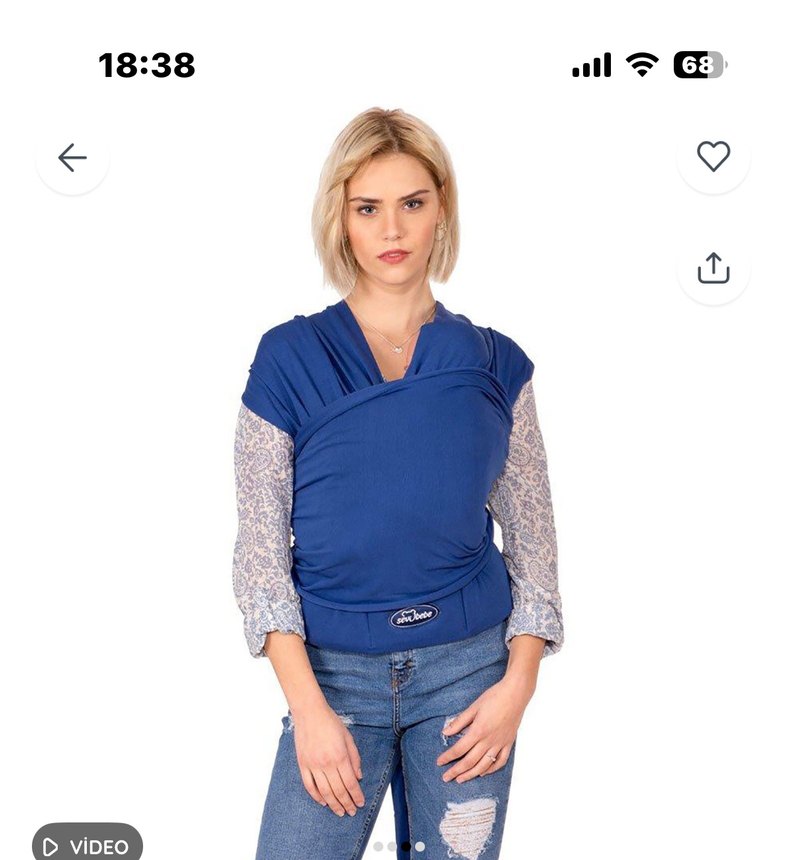 Yumuşak kumaştan mavi bebek kanguru sling, gri detaylı. Rahat taşıma için güvenli şekilde sarılır.
