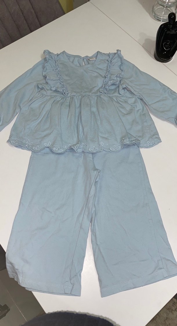 Pastel mavi renkte, uzun kollu ve fırfır detaylı bebek kız takımı. Yumuşak kumaştan, işlemeli etek ucu ve sade desensiz tasarım. 2-3 yaş için uygundur diğer mavi pantolon ile gönderim yapılacaktır, mavi İspanyol paçalı pantolon 2-3 yaş fitilli ve riklalı bir kumaştır. Takım ile birlikte fiyat yazılmıştır isterseniz ayrı ayrı da alabilirsiniz mesajlardan iletişime geçebilirsiniz.