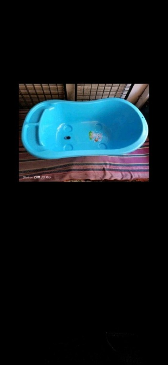 Mavi renkli, yumuşak yüzeyli ve bölmeli bebek küveti, rahat banyo için uygundur.