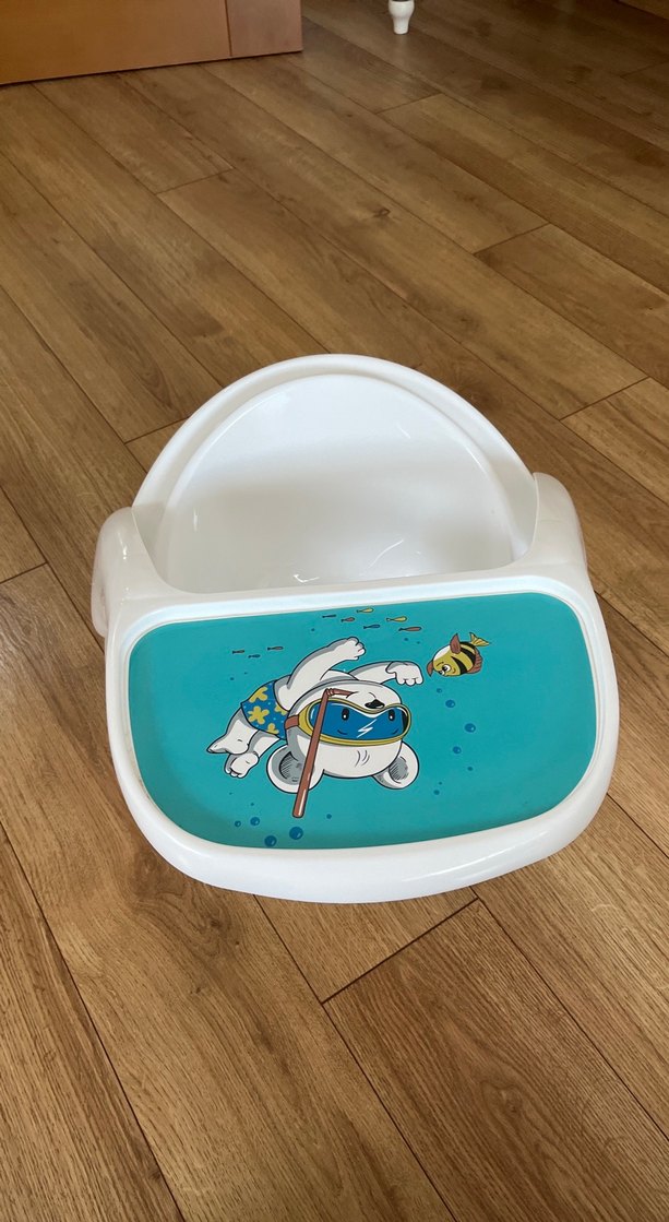 Bu açık mavi bebek mama sandalyesi, tepsisinde dalış yapan köpek çizimi içerir. Kolay temizlenebilir beyaz oturma alanı ve tepsiye sahiptir.Tepsisi çıkarılabilir bebek oturmaya başladığında tepsisi çıkarılıp banyoda yaptırılabilir