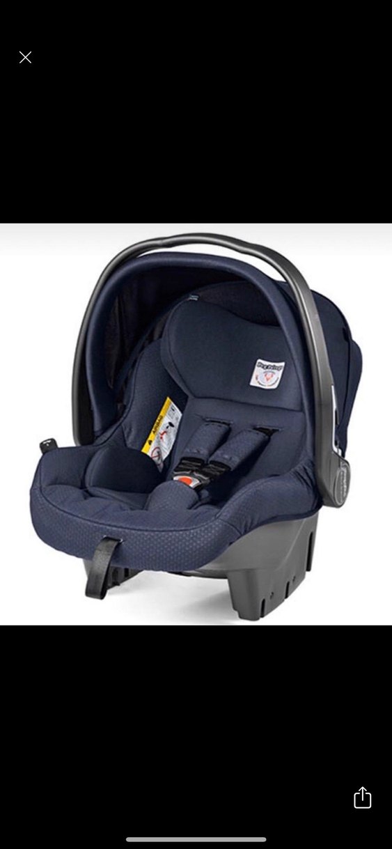 Gri detaylı mavi bebek oto koltuğu, sağlam tutma sapı ve güvenli emniyet kemeri sistemi ile güvenli seyahat sağlar. Rahat yastıklamaya sahiptir.