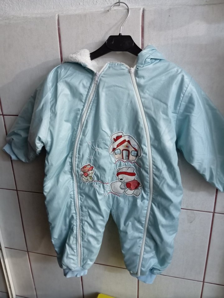Pastel mavi renkte, polar astarlı, fermuarlı bebek tulum mont Nakışlı sokak stili desenlerle süslenmiştir. ❄️