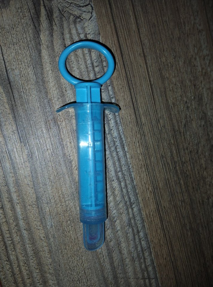 Renkli mavi bebek şırıngası, besleme veya ilaç verme için büyük halka tutma yeriyle kolay kullanılır.