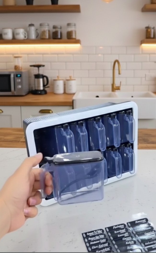 Mutfakta düzenli ve hijyenik süt saklama için tasarlanmış açık mavi süt saklama kapları. Kullanımı ve saklaması kolay.
