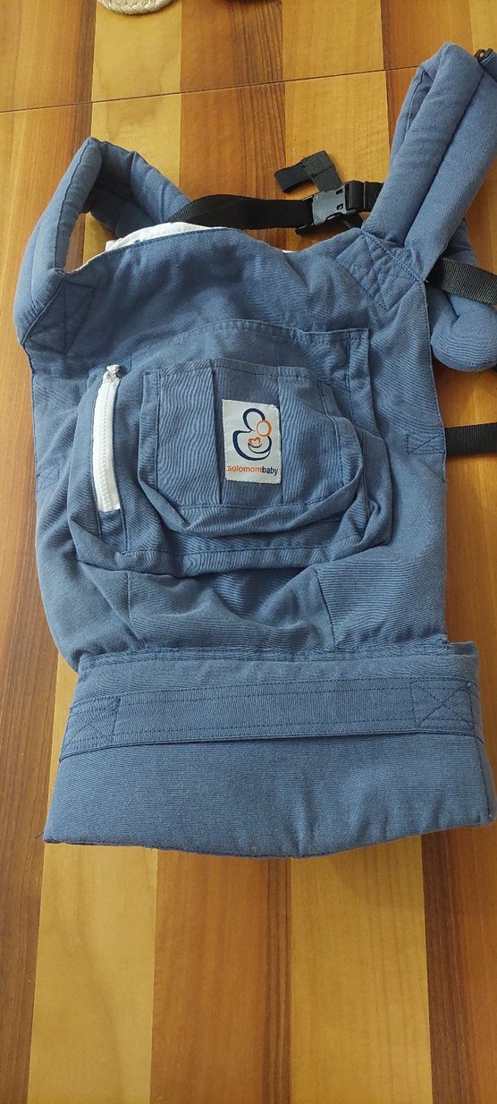 Mavi renkli, yumuşak dolgulu askıları ve önünde fermuarlı cep bulunan bebek taşıyıcı kanguru. Rahat taşıma sağlar.