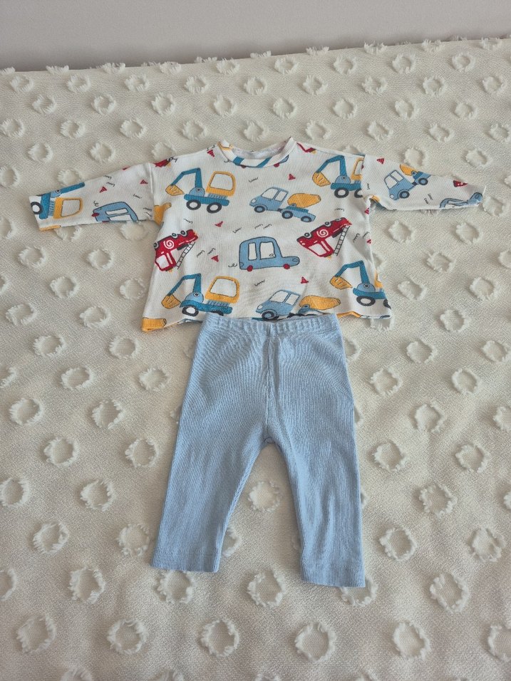 Mavi Bebek Triko Takım Araç Desenli