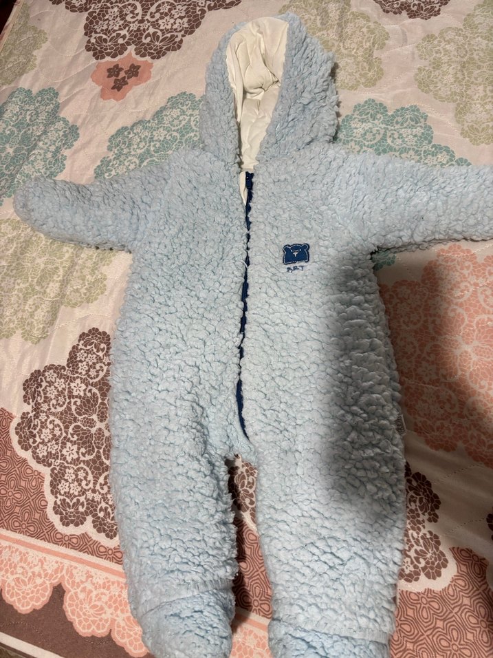 Pastel mavi renkli bebek tulumu, yumuşak ve kürklü kumaştan yapılmıştır. Kapüşonlu ve desensiz sade tasarıma sahiptir. ❄️ 1 kez evde giyildi. Fırsat olmadı giymeye kalın ve güzel bir ürün dışarıda kullanılabilir