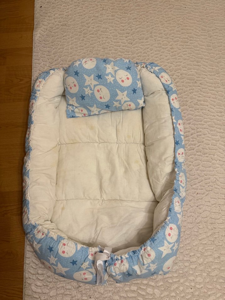 Mavi Bebek Uyku Minderi ve yan yastık la birlikte defosu yoktur
