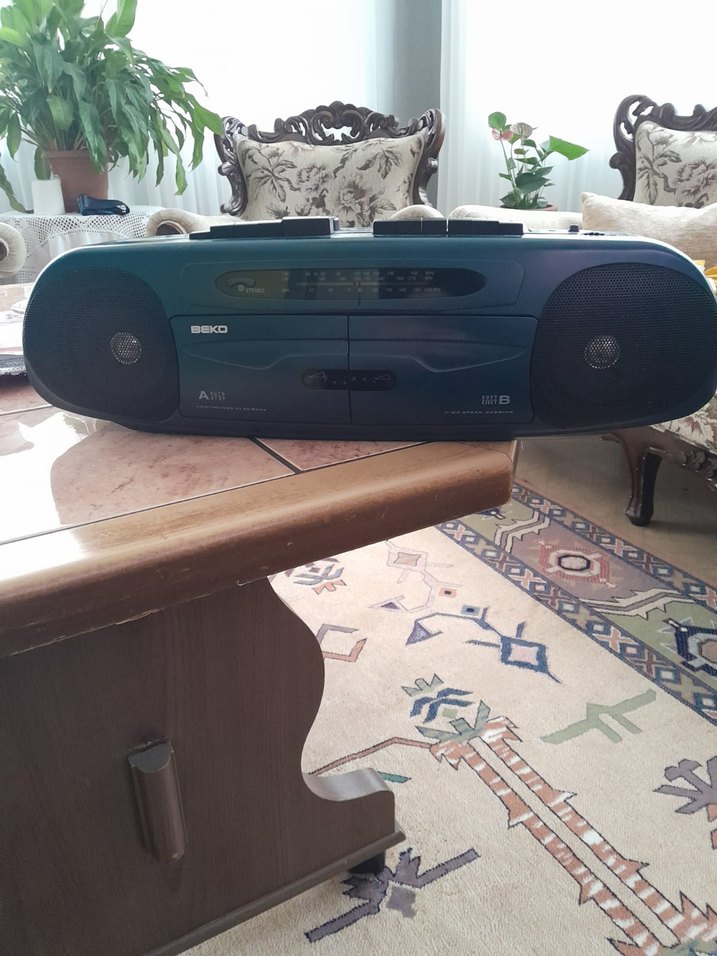 Koyu mavi Beko müzik seti, radyo ve kaset çalar özellikleriyle çeşitli müzik dinleme seçenekleri sunar. Hiçbir sorunu yoktur